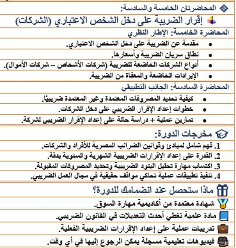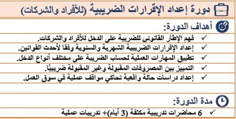 دورة إعداد الإقرارات الضريبية (للأفراد والشركات)